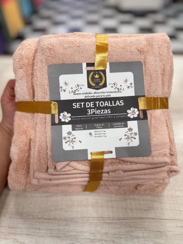 SET DE TOALLAS 3 PIEZAS SANTEL LISO (MEDIANO)