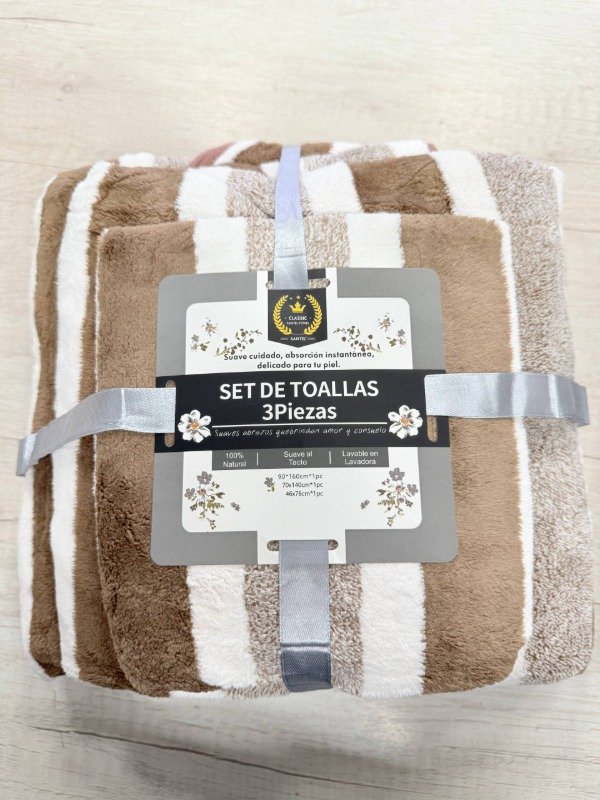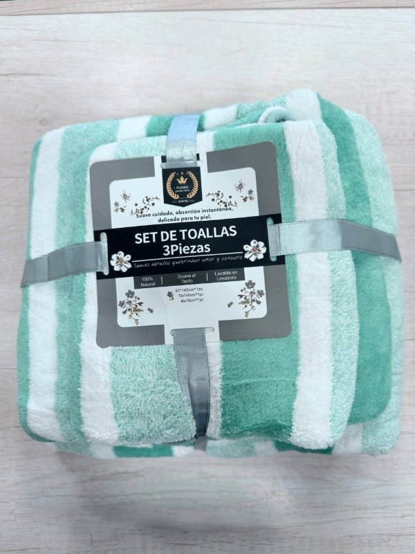 SET DE TOALLAS 3 PIEZAS SANTEL RAYADO (GRANDE)